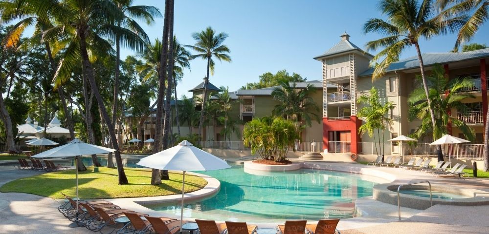 The lagoon-style pool winds around the front of the resort, with shady spots under the palm trees and plenty of grassy areas to throw down a towel. There are sun lounges and umbrellas that are great for soaking up some sunshine and a wading pool that is safe and fun for children. In Palm Cove you will find a number of world-class dining options, all within easy walking distance.